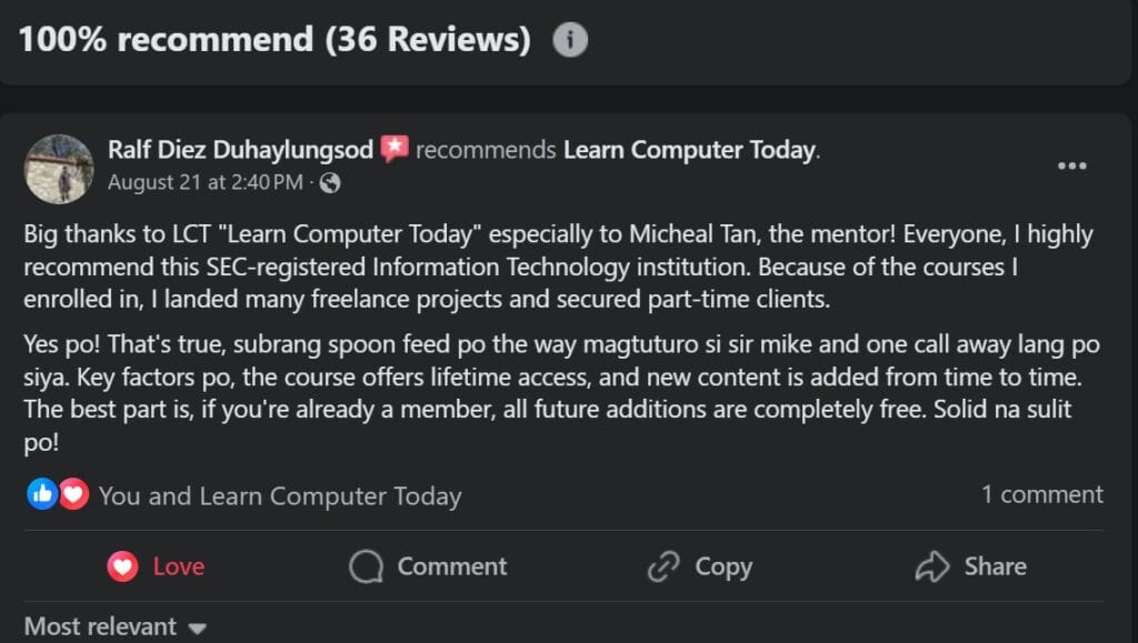 All paid and free courses will be in Tagalog (Filipino Dialect) except in the Courses in the Membership Pro Access.